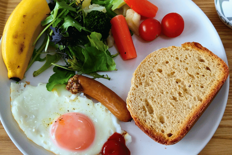 ごはんやパンだけで終わらず、タンパク質(肉・魚・卵・大豆製品など)や野菜を足すことを意識すると、自然とバランスが整いやすくなります。